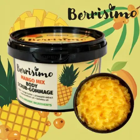 Θα απολεπίσει και καθαρίσει το σώμα σας, όπως κανένα άλλο scrub. Επιπλέον θα απολαύσετε το άρωμα από βούτυρο Mango που θα ενυδατώσει την επιδερμίδα σας. Το εκχύλισμα Ανανά και τα έλαια Babasu και Sea Buckthorn, θα θρέψουν και θα κάνουν λείο και φωτεινό το δέρμα σας.
