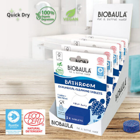 Οι ταμπλέτες καθαρισμού για το Μπάνιο BIOBAULA δεν αφήνουν κανένα επιβλαβές υπόλειμμα και δεν έχουν έντονο άρωμα. Έτσι μπορούν να χρησιμοποιηθούν εύκολα σε σπίτια με κατοικίδια.