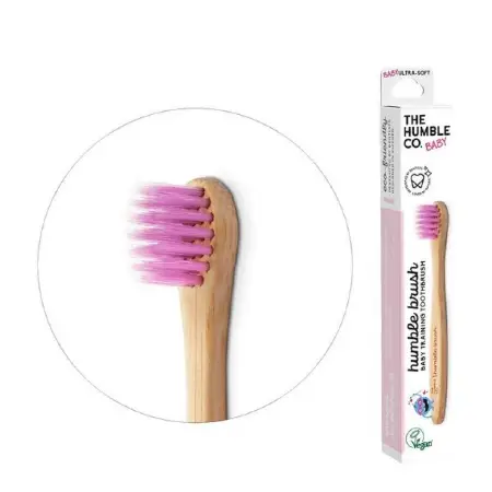 Βρεφική οδοντόβουρτσα με πολύ μαλακή τρίχα. Λαβή κατασκευασμένη από 100% βιοδιασπώμενο, βιώσιμης καλλιέργειας μπαμπού.