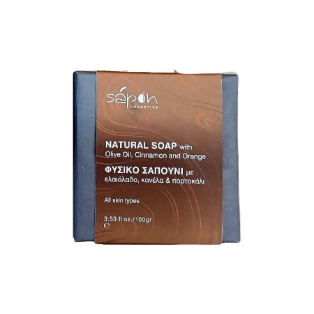 Φυσικό Vegan Σαπούνι με άρωμα Κανέλα – Πορτοκάλι. Αφεθείτε σε μια αρωματική εμπειρία απόλαυσης και φροντίδας με το αυτό το φυσικό σαπούνι της Sapon Cosmetics.