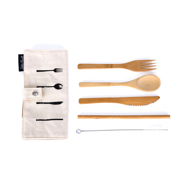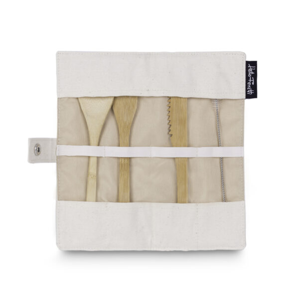 Το σετ περιλαμβάνει πιρούνι, κουτάλι, μαχαίρι, καλαμάκι και βουρτσάκι καθαρισμού.