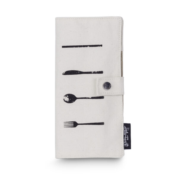 Σετ μαχαιροπήρουνα από μπαμπού με θήκη από βαμβάκι.